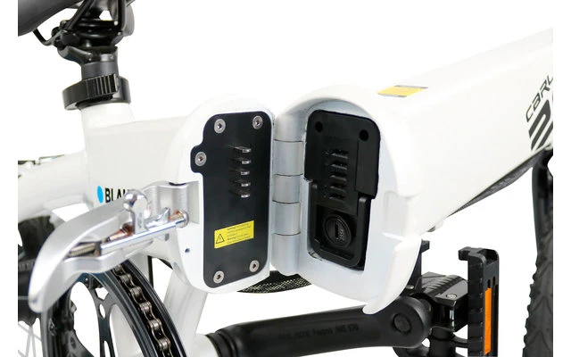 Nachfolger des beliebten 16â CARLA 190, Heckantrieb mit neuem, optimierten Controller, Kraftvoller Li- Ionen Akku 36 V/ 7,8 Ah fĂŒr bis zu 60 km Reichweite mit kurzer Ladezeit, Akku entnehmbar/ abschlieĂbar, Stabiler, faltbarer Aluminiumrahmen, Leicht verstaubar durch intelligenten Schnellspannmechanismus incl. faltbarer Pedale & Lenkstange LCD- Fahrrad- Computer mit 5- stufiger TretunterstĂŒtzung bis 25 km/h, Schiebehilfe/ Anfahrhilfe, Tektro V- Brake Bremsen, nur ca. 15 kg Gewicht incl. Akku, erfĂŒllt die Anforderungen an die StVZO, Arctic weiĂ im Blaupunkt Design