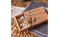 Die WattestĂ€bchen aus Bambus und 100 % biologischer Baumwolle sind die plastikfreie & nachhaltige Alternative zu herkömmlichen WattestĂ€bchen aus Plastik. Sie kommen im 200er-Pack und sind in einer praktischen Aufbewahrungsbox aus Naturkarton verstaut â perfekt fĂŒr zu Hause oder unterwegs.