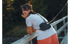 Praktische, kleine Tasche aus recyceltem Nylon, die sich perfekt dazu eignet, nur die wichtigsten Dinge auf Reisen und im Alltag mitzunehmen. Das Hauptfach bietet genug Platz fĂŒr Smartphone und Reisepass. Eine Innentasche aus Mesh und eine AuĂentasche mit ReiĂverschluss sorgen fĂŒr Ordnung. Mehrere Befestigungsmöglichkeiten und verstellbare Riemen erlauben individuelles Tragen: ĂŒber der Schulter, auf der Brust oder an einem GĂŒrtel. Das AuĂenmaterial ist wasserdicht, jedoch nicht die ReiĂverschlĂŒsse und NĂ€hte, sodass die Tasche zwar etwas NĂ€sse standhĂ€lt, aber nicht untergetaucht werden kann.