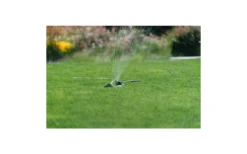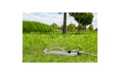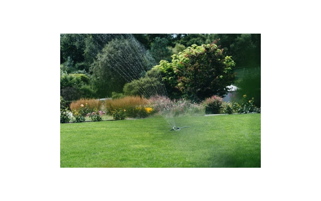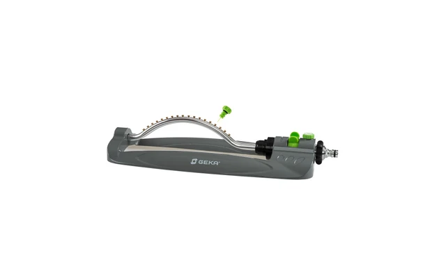 Robuster Viereckregner mit MessingdĂŒsen. Einstellbare BewĂ€sserungsbreite. Inklusive Pin fĂŒr die DĂŒsenreinigung. BewĂ€sserungsflĂ€che maximal 16m x 12m.
