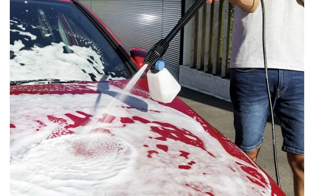 Der Aufsatz zur Ausbringung von Reinigungsschaum erweitert das Einsatzspektrum der MultiJet 36V. Einfach Reinigungsmittel in den BehĂ€lter fĂŒllen, anklicken und schon sprĂŒht die MultiJet 36V Reinigungsschaum, der auf der OberflĂ€che haftet und Schmutzpartikel löst.