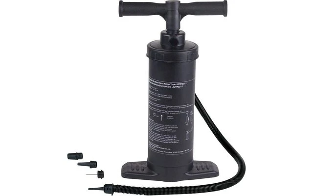Mit vertikalem Kolben aus Kunststoff. Doppelhubpumpe 2 x 3000 ccm, Hubvolumen 2 x 3 L und patentiertem Bajonettverschluss. Mit verschiedenen Adapter inkl. Nadelventil fĂŒr FuĂbĂ€lle etc.