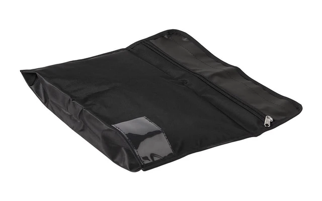Die Bordtasche ist daher mit einer Bodenfalte ausgestattet, die sich auf bis zu 65 mm aufstellen lÀsst. Sogar ein Ringbuch im DIN-A4-Format passt hinein.