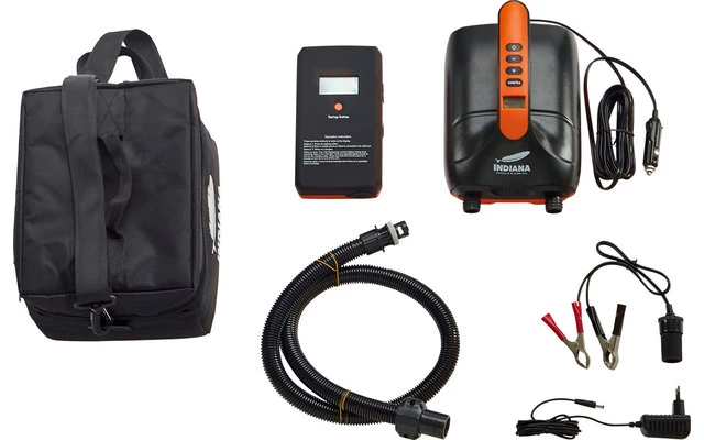 Die Indiana Batterie Pumpe hat eine Lithiumbatterie und einen USB-Anschluss. Der zweistufige Motor fĂŒr einen maximalen Luftstrom von 350 Litern pro Minute ermöglicht es Ihnen, Ihre Tafel in wenigen Minuten fertig zu stellen. Die Pumpe stoppt automatisch, wenn der Luftdruck das gewĂŒnschte Niveau erreicht.