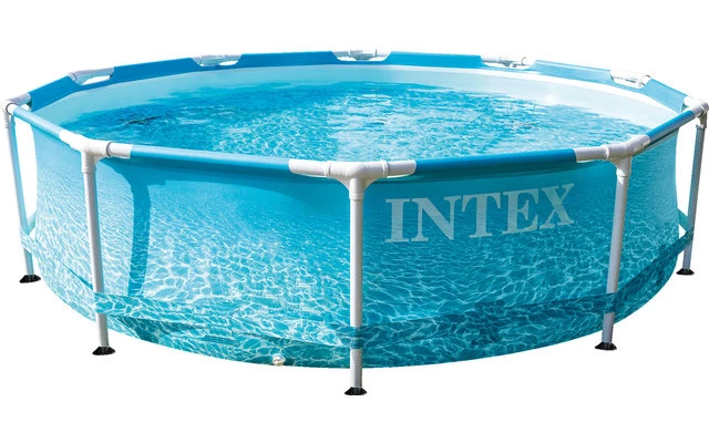 Der Metal Frame Pool von Intex lĂ€dt Familie und Freunde zu langen Badetagen ein. Der fotorealistische Ozean-Print auf den SeitenwĂ€nden und auf dem Boden bringt das Meer in Ihren Garten und schafft ein unvergleichliches Ambiente. Die einfach zu montierende, massive Konstruktion aus starken, pulverbeschichteten Metallrohren sorgt fĂŒr eine hohe StabilitĂ€t und eine lange Lebensdauer.