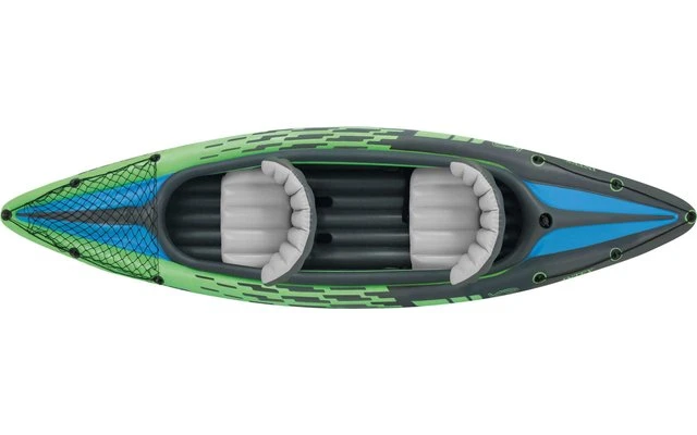 Sport-Kajak fĂŒr bis zu 2 Personen geeignet! Inklusive Paddel und Pumpe, mit einzeln aufblasbaren Sitzteilen fĂŒr bequemes Sitzen und ausreichend Platz. Farbe: schwarz-grĂŒn im sportlichen Design.
