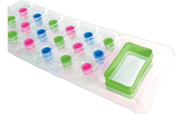 Entspanntes Sonnenbaden auf dem Wasser. Mit der 188 x 71 cm groĂen Luftmatratze â18-Pocket Suntanner Matâ von Intex im transparenten Design mit bunten Taschen ist das möglich. Das integrierte Kopfkissen, zwei Luftkammern und ein 0,28 mm starkes Vinyl sorgen fĂŒr Festigkeit und angenehmen Liegekomfort.