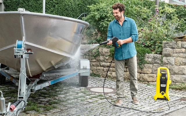 GlĂ€nzt auch ohne Stromanschluss: der akkubetriebene Hochdruckreiniger fĂŒr vielseitige Anwendungsgebiete wie kleinere Autos, Boote, Gartenmöbel, MĂŒlltonnen und weitere kleinere Reinigungsaufgaben rund ums Haus. Dank Standard-, Boost- und Reinigungsmittel-Modus lassen sich die verschiedenen Reinigungsobjekte mit genau dem richtigen Druck bearbeiten. Auf dem analogen Display der Hochdruckpistole wird der gewĂ€hlte Modus wĂ€hrend der Reinigung dauerhaft angezeigt. Die einzelnen Druckstufen können bequem durch den Wechsel des Strahlrohrs eingestellt werden. Das GerĂ€t ist kompatibel mit dem 36 V / 5,0 Ah Li-Ion Wechselakku aus der 36 V KĂ€rcher Battery Power-Plattform. Akku und LadegerĂ€t sind als Sonderzubehör separat erhĂ€ltlich. Zudem kann ein KĂ€rcher Ansaugschlauch angeschlossen werden, um Wasser aus alternativen Wasserquellen anzusaugen.