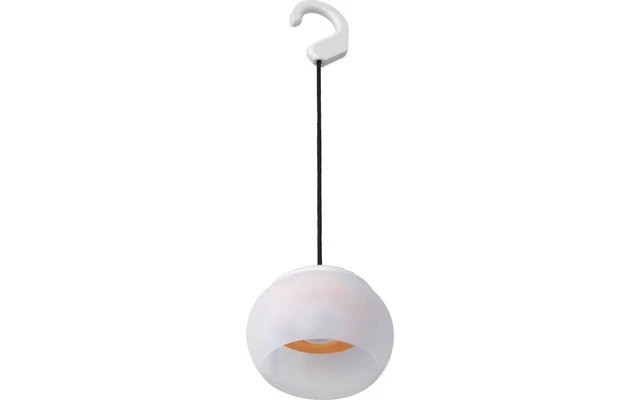Handliche HĂ€ngeleuchte mit 4 LEDs und Schnur mit Haken zum AufhĂ€ngen. Das GehĂ€use ist durch einen Silikonschirm verhĂŒllt. Betrieb mit 3 Microzellen AAA (nicht im Lieferumfang enthalten).