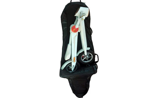 Dank der hochwertigen Transporttasche lÀsst sich das K1 Elektro-Mofa perfekt verstauen. Mit dem Griff an der Tasche können Sie den Roller ganz einfach transportieren.