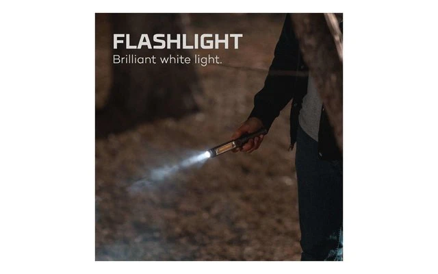 - Laufzeiten: Taschenlampe: 8h / 24 h, Arbeitslampe: 2,5 h / 14,5 h, Arbeitslampe rot: 7 h / 1 h