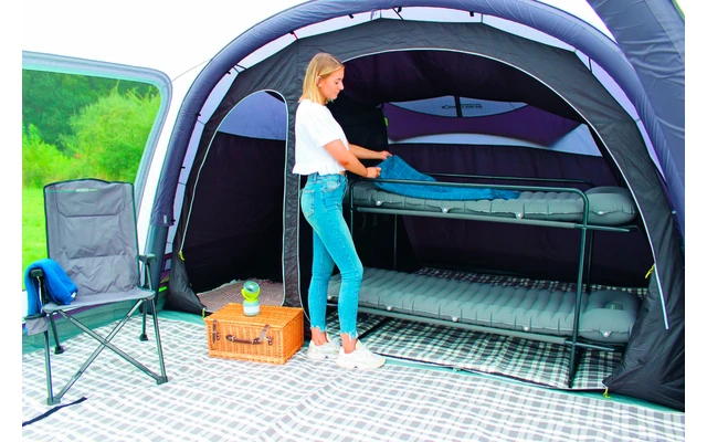 Dank des Schnellverbindungssystems können zwei dieser aufblasbaren Matratzen mithilfe von Clips miteinander verbunden werden, wodurch ein groĂes Doppelbett entsteht. Dieses Campingzubehör ist ideal fĂŒr die Verwendung in Verbindung mit unserem Premium-Etagenbett.
