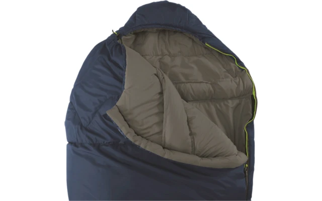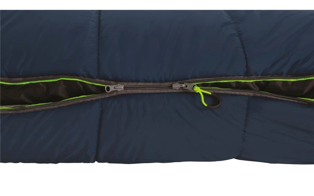 Outwell Schlafsack mit Körperkonturprofil fĂŒr optimales WĂ€rme-Gewichts-VerhĂ€ltnis, Isolierte Schallwand im Nacken zur Minimierung von Zugluft und WĂ€rmeverlust. Durch Dicke und Struktur differenzierter Kapuzen-Kordelzug fĂŒr einfache Anpassung durch BerĂŒhrung