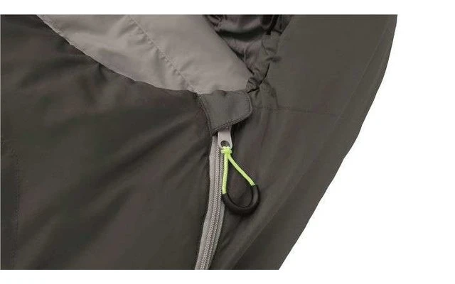 - Zwei ReiĂverschlĂŒsse: Zwei versetzte ReiĂverschlĂŒsse verlaufen so entlang der oberen Kante, dass SeitenschlĂ€fer nicht direkt darauf liegen. Sie ermöglichen eine flexible WĂ€rmeregulierun.
