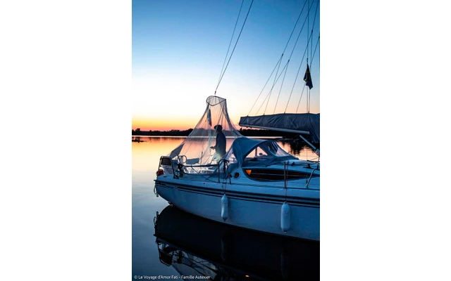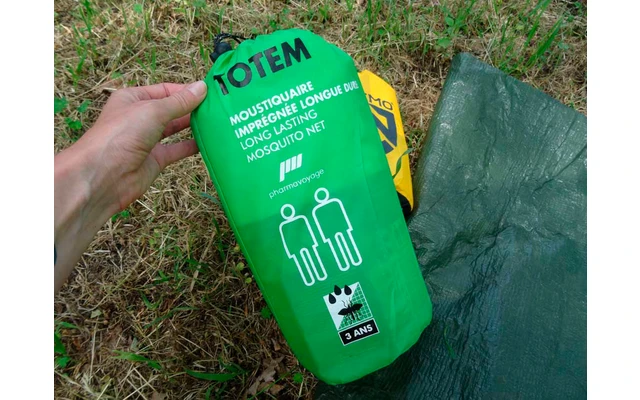 Moskitonetz, Packsack mit Zugband, Montagematerial (Schnur, Haken, DĂŒbel)