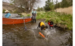 Die Weste besteht aus umweltfreundlichem Gaia Schaumstoff, verfĂŒgt ĂŒber innovative Details und einen fest verankerten Griff, welcher optimal positioniert ist, um den Hund aus dem Wasser ins Boot zu heben.