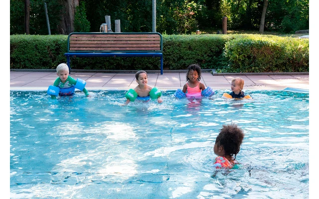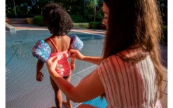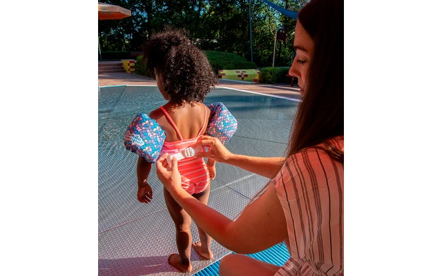 Einfache Anpassung mittels Steckverschluss am RĂŒcken, der von den Kindern nicht geöffnet werden kann. Hervorragende Bewegungsfreiheit beim Schwimmen und Tollen. Angenehmer Schnitt und freches Design. Der Puddle Jumper ist besonders leicht und bietet somit einen hohen Tragekomfort.