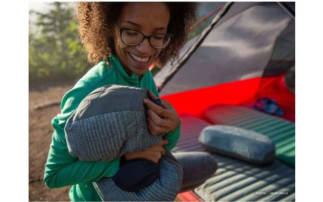 Dieses innovative Kissen besteht aus einem aufblasbaren Kern mit Kammern, der trotz extremer Komprimierbarkeit eine sehr hohe StĂŒtzkraft bietet. Der Bezug des Kissens mit Synthetikisolierung besteht aus besonders weichem, gebĂŒrstetem Polyester, damit Sie auch unter den Sternen gut schlafen.