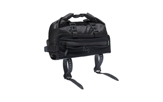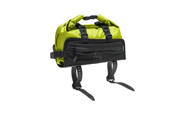 Die wasserdichte Packtasche wird mit ReiĂverschluss gesichert und je nach Beladung – max. 3 Liter – wasserdicht gewickelt und in der Halterung ĂŒber zwei mit mit Steckschnalle geischerte Gurte fixiert. Soll bei einem Stop schnell mal was gekauft werden, ist die der Packsack schnell aus der Halterung entnommen und mit dem mitgelieferten Tragegurt umgehĂ€ngt. Die Oberrohrtasche ist nicht nur ein praktischer Begleiter fĂŒrs Bikepacking. Sie leistet auch ganze Arbeit in Sachen Umweltschutz, denn sowohl Halter als auch Packsack bestehen zu 100 % aus recycelten Materialien.